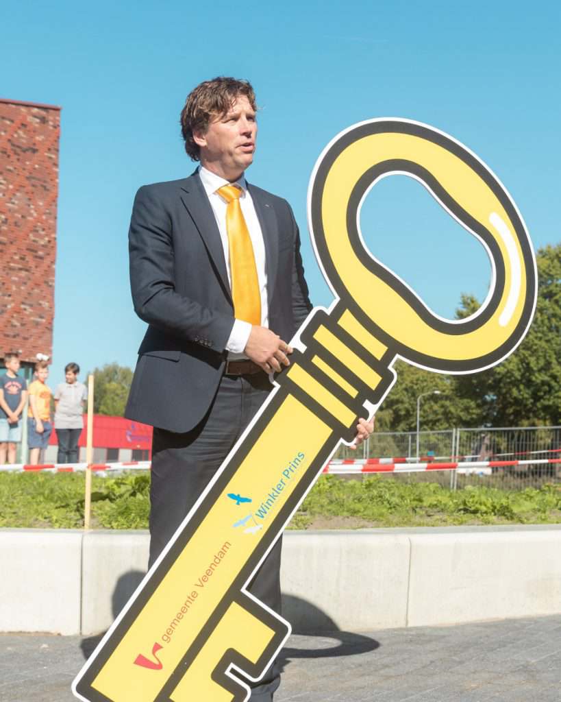 Op woensdag 8 september 2021 om 11.30 uur droeg wethouder Henk Jan Schmaal officieel de sleutel van het nieuwe brugjaargebouw van Winkler Prins over aan Ineke Jager, directeur van het brugjaar.