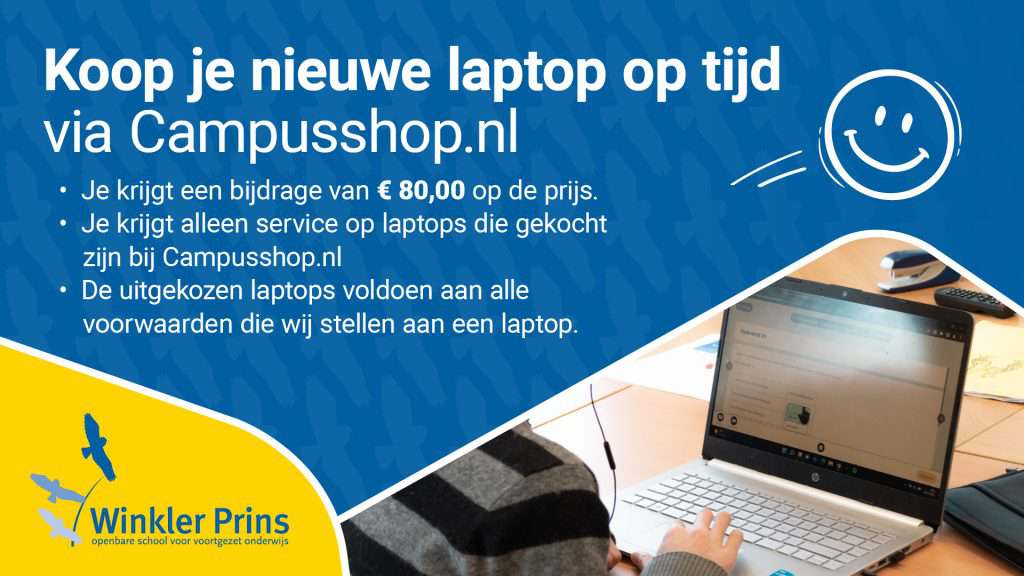 Heb je een (nieuwe) laptop nodig? Bestel deze dan snel met je ontvangen persoonlijke code bij Campusshop.nl en zorg dat je voor volgend schooljaar je laptop hebt!