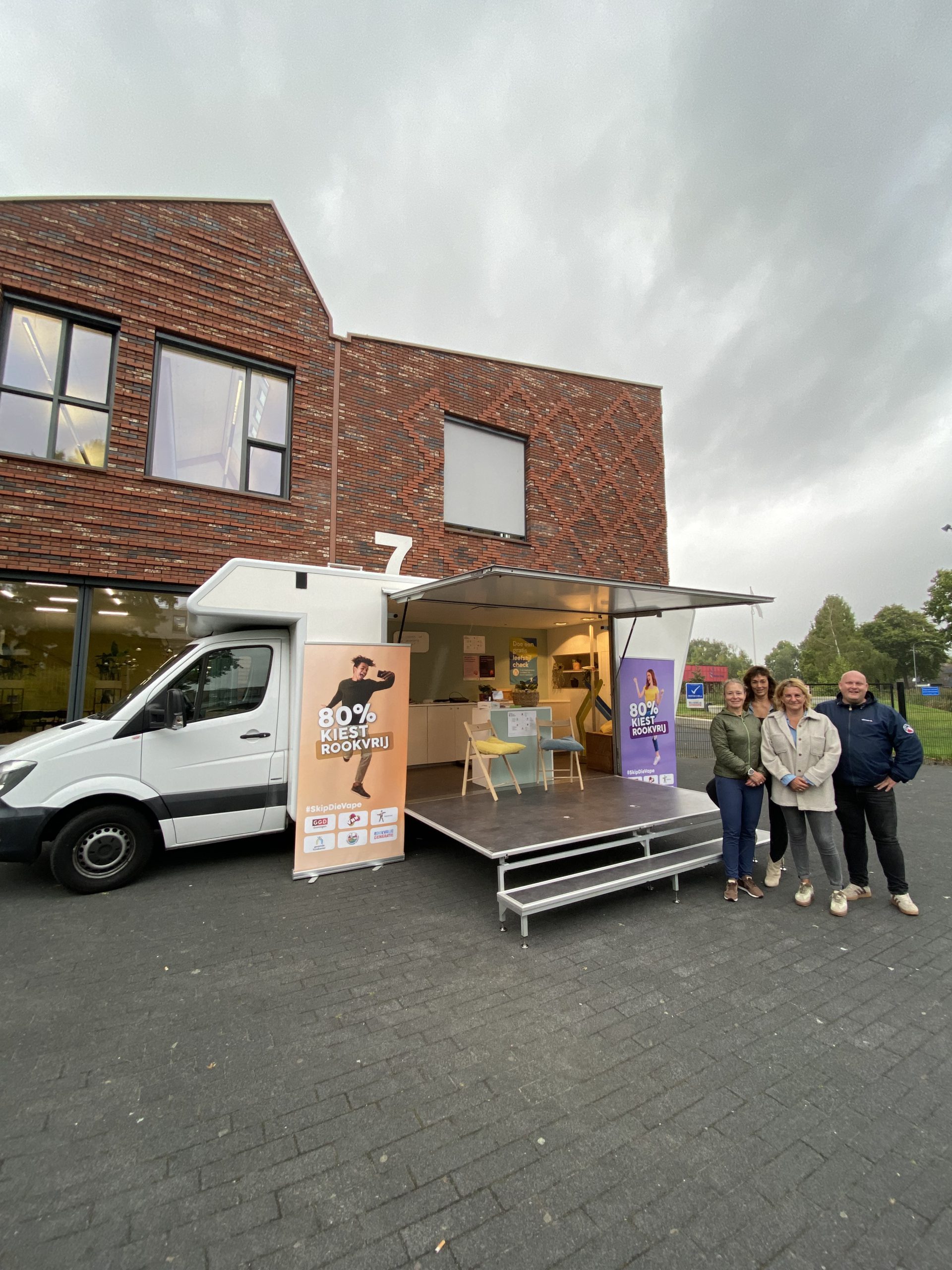 Vandaag staat De Gezonde Huiskamer, een opvallende bus, op het schoolplein van onze school. Leerlingen kunnen tussen 08.30 en 13.00 uur deelnemen aan interactieve activiteiten rondom de thema’s roken, vapen en stress.