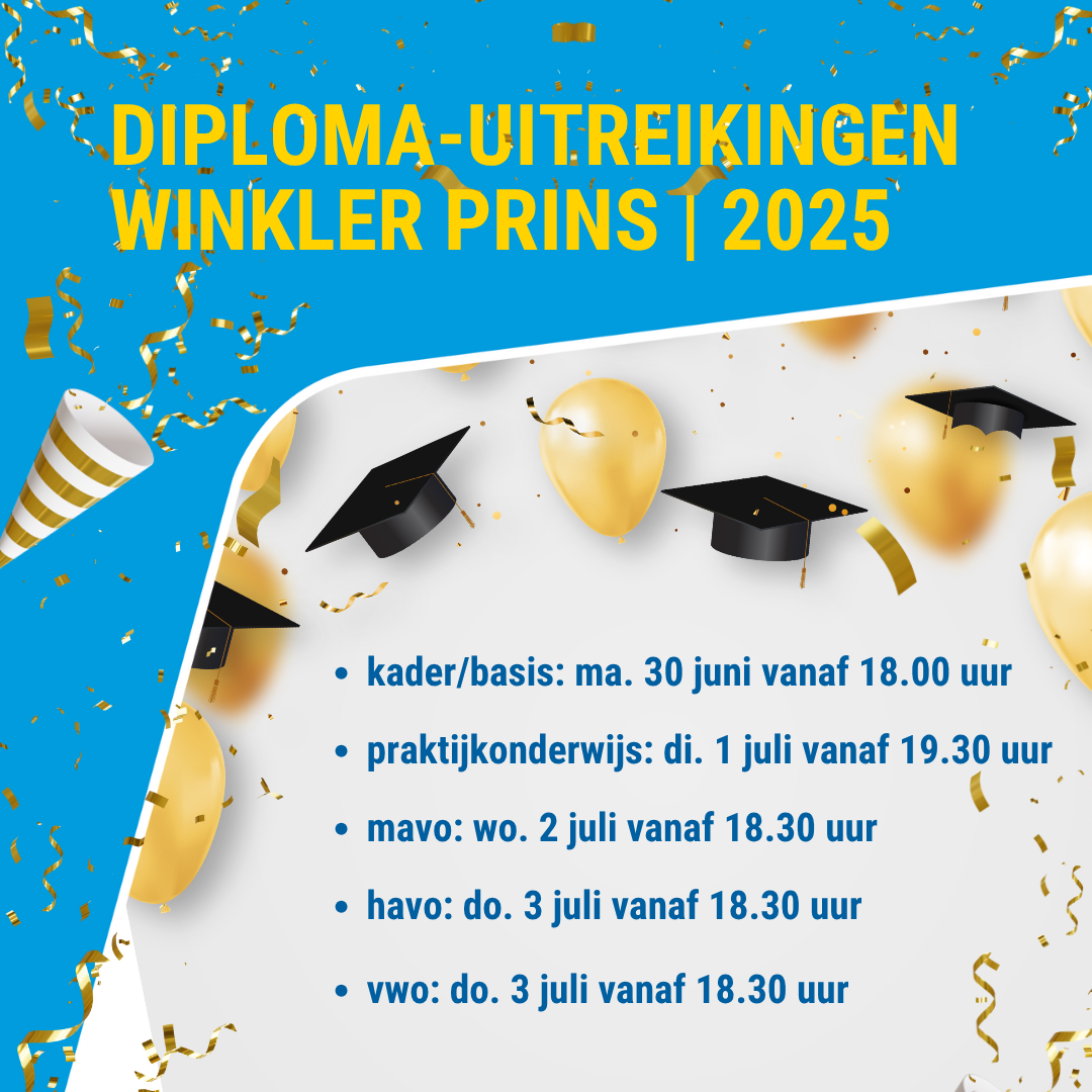 Diploma-uitreikingen op 30 juni, 1, 2 en 3 juli 2025