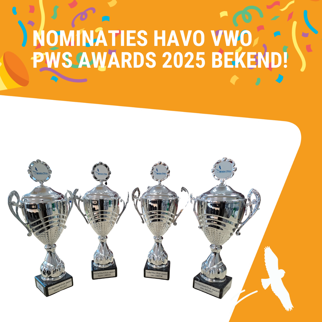De genomineerden voor de prestigieuze Winkler Prins PWS Awards zijn bekend! Er is een prijs in elk van deze vier categorieën: HAVO CM/EM, HAVO NG/NT, VWO CM/EM en VWO NG/NT. Binnenkort komen de vakjury’s bijeen om de winnaars te bepalen.