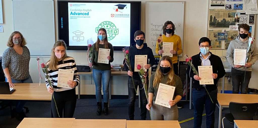 Geslaagd! Zeven vwo 6-leerlingen hebben na lang wachten hun Certificate of Advanced English gekregen.