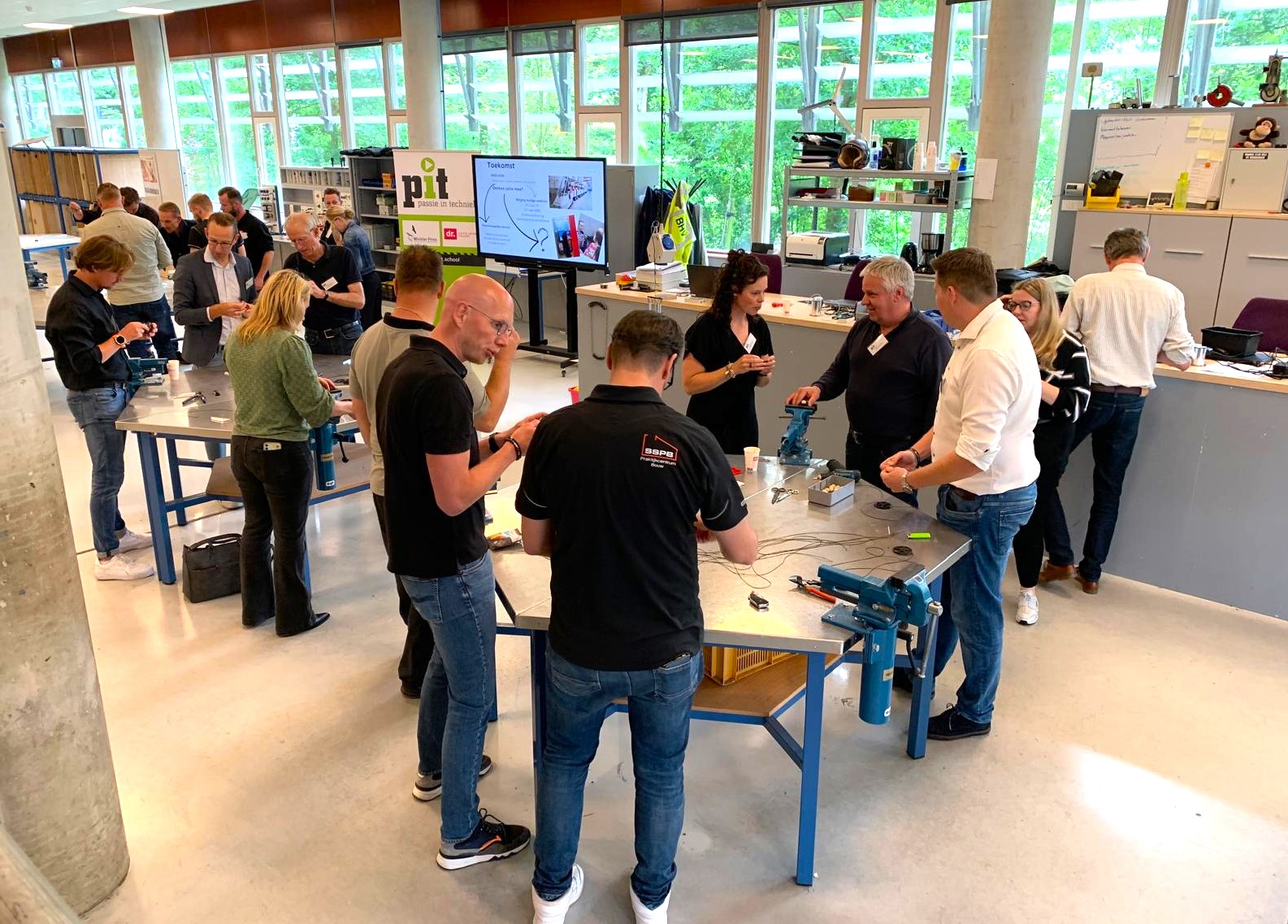 Op 30 mei gingen niet de leerlingen, maar de samenwerkingspartners van en betrokkenen bij het project Passie in Techniek (PIT) aan de slag in het technieklokaal. Het was een productieve afsluiting van een succesvol PIT-jaar. PIT is een gezamenlijk project van Winkler Prins in Veendam en het dr. Aletta Jacobs College in Hoogezand. Beide VO-scholen werken samen om techniek in de breedste zin van het woord te promoten.
