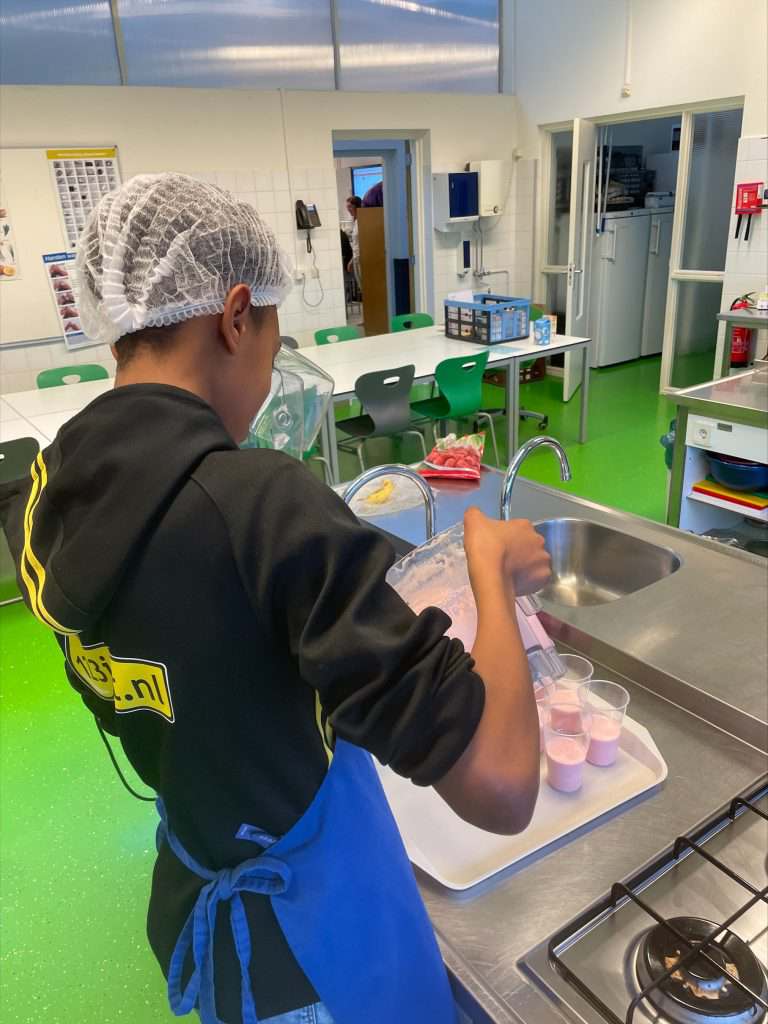 In de kantine werden de leerlingen en ouders getrakteerd op zelfgemaakte koek en cake en in de keuken werden er door leerlingen hapjes klaar gemaakt waarmee ze de mensen in de school op trakteerden.