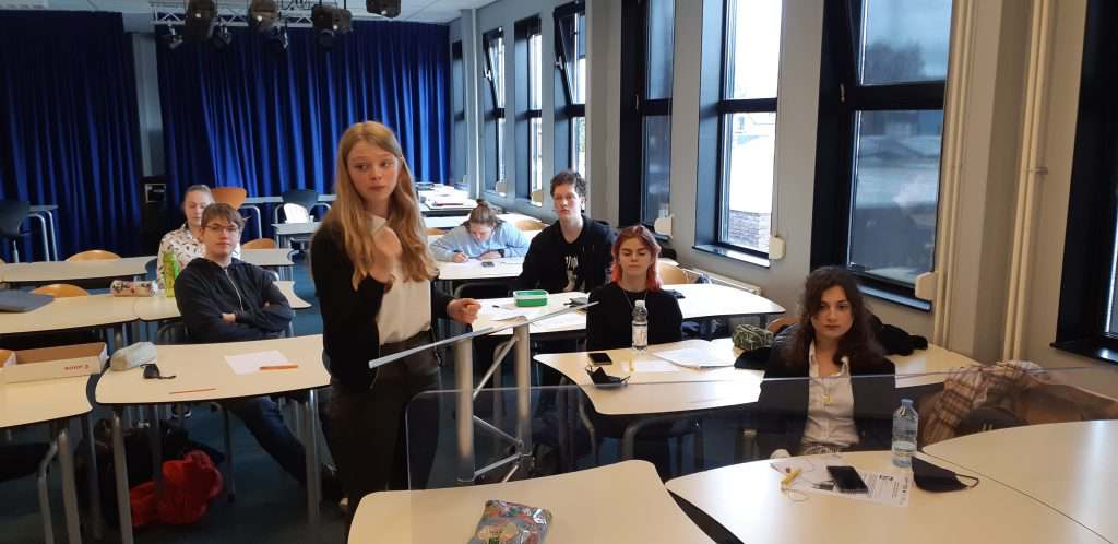 “Ook dit jaar hebben wij als debatteam van het O.S.G. Winkler Prins deelgenomen aan het Lagerhuisdebat. Dit jaar echter op een andere manier dan normaal, namelijk vanuit een lokaal in plaats vanuit de Statenzaal in Groningen voor de meeste van ons. Gitte Gardien en Ynze Velema zijn als vertegenwoordigers uit ons team naar de Statenzaal gegaan om ons vanuit daar te representeren in de debatten met verscheidene, recente, belangrijke stellingen. De V-rede is gegeven door Anna Oudemans, waarbij de rest van ons team ondersteunend diende. Wij zaten met zijn allen houdend aan alle Corona-maatregelen in het CKV-lokaal op locatie Pinksterstraat. Hoewel we deze manier van het Lagerhuisdebat niet gewend zijn maakt deze manier het niet minder leuk voor ons om deel te nemen. Elke week oefenen wij op het moment online voor deze stellingen en zorgt dit voor de leukste argumenten waar we met zijn allen om kunnen lachen, maar waar we ook kritiek op kunnen hebben. Ook dit jaar hebben wij weer mogen genieten van de leuke conferentie die mogelijk is gemaakt door het Lagerhuis ondersteunend door onder andere het Erasmus Instituut. Ondanks Corona kunnen we er dus toch wat leuks van maken. Kom erbij, geniet en leer ervan. Lijkt je dit nou leuk, stuur dan een mail naar: . Of schiet een deelnemer aan van het debatteam: Age, Elise, Fedde, Wout, Jamie, Anna, Selma, Owen, Bart, Ynze, Gitte, Merijn, Lieke, Henriëtte, mr. Oud, mr. Onderwater, mr. Korterink en mr. Brouwer.”